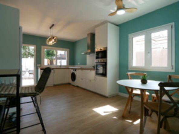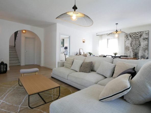 It features 3 well-distributed bedrooms, 3 fully renovated contemporary bathrooms, a private garden with a pool, and space for several vehicles. The villa is sold fully furnished and ready to move into.