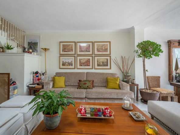 The townhouse is built on two floors plus a basement, finished with quality materials, high ceilings, wood and aluminium carpentry, among others.