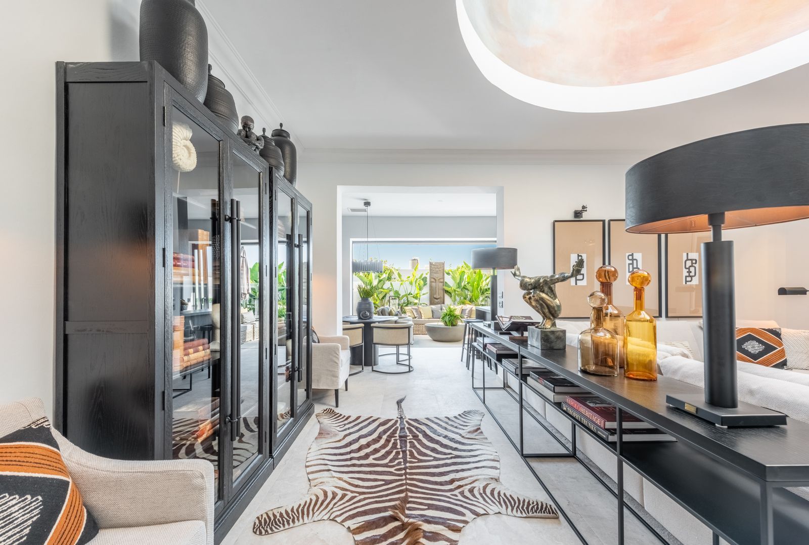 This beach front bungalow style townhouse is literally a few steps from the sea, located in the Oasis Club urbanization. A residential area on the Golden Mile that has a privileged location on the seafront and has a great beach club within the community. This complex is very close to all the services and leisure areas of the Golden Mile and has direct private access on to the beach and the promenade from where we can take a pleasant walk until we reach Puerto Banús to one side and Marbella towards the other side passing by the Puente Romano and Marbella Club Grand Luxury Hotels and their respective well-known restaurants.