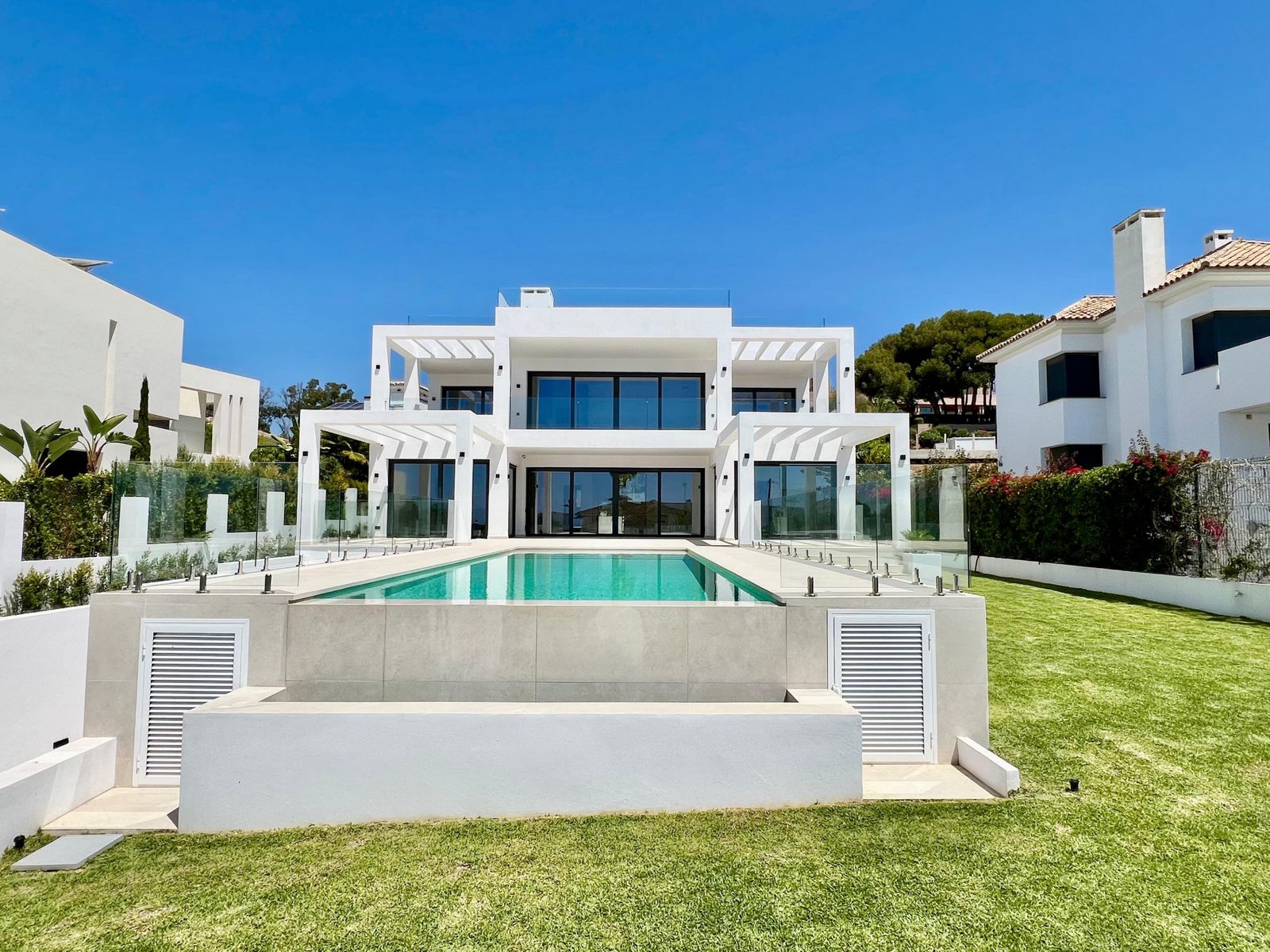 Located in a beautiful corner of the exclusive Elviria. This elegant villa has aesthetic perfection and the technological avant-garde join in an exquisite architectural work.