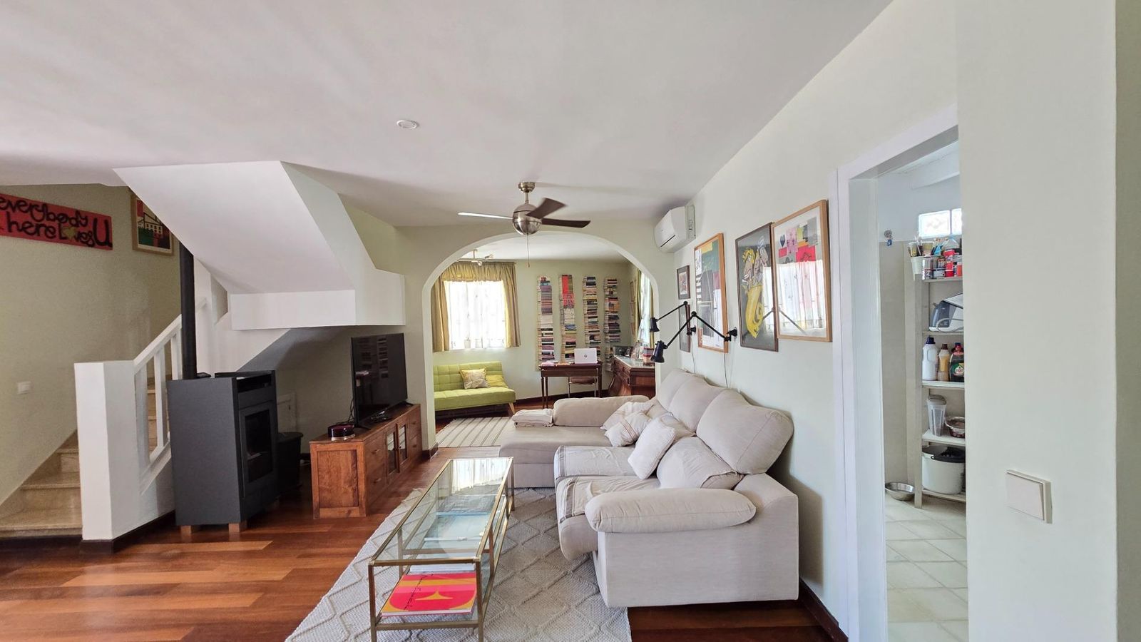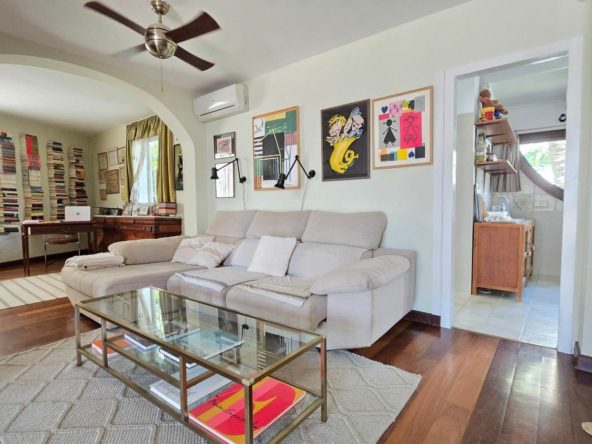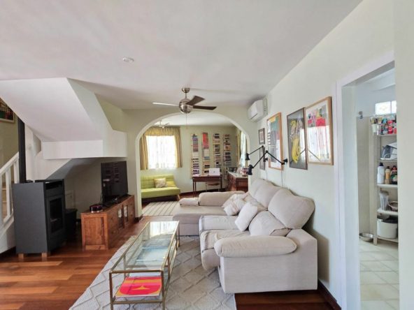 The main floor welcomes you with a spacious living-dining room with a double atmosphere, the result of joining one of the 4 original bedrooms to the living room, thus creating a spacious, bright and very versatile day area. Independent kitchen, with pantry, guest toilet and direct access to the back garden and the communal pool.
