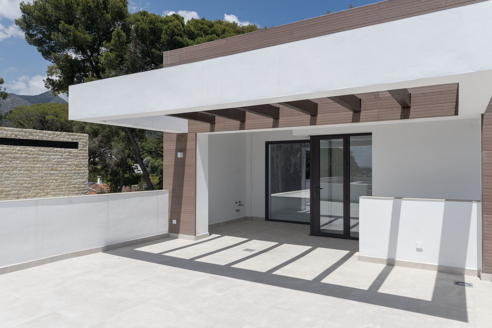 Modern luxury villa with exceptional qualities, located in a gated community composed of only 15 villas. The community has 24-hour security guards and concierge services, and is located in a green oasis on the edge of the famous Golden Mile, a few meters from the beach and a few minutes walk from the old town.