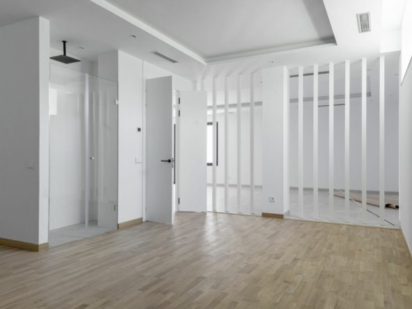The villa is built on a plot of 885sqm and has a total living area of 730sqm. It has a large terrace of 225m2 and offers 4 bedrooms and 5 bathrooms. Inside, there is a spacious living room, an American kitchen equipped with furniture and appliances of the highest quality. In addition, the villa has a private elevator that connects each level of the property, a cinema, sauna and hammam, and underfloor heating.
