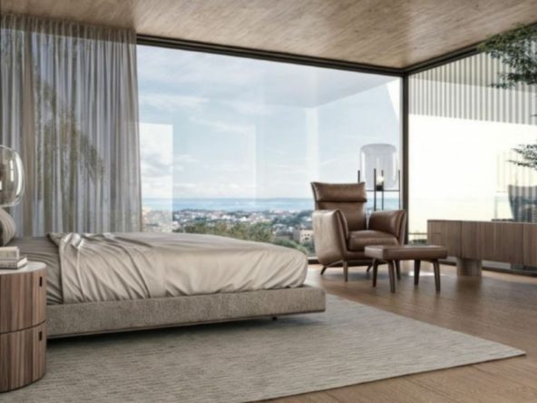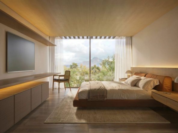 Inside, the villa embodies refined elegance and functionality. The open-plan design seamlessly connects the kitchen, dining, and living areas, enhanced by floor-to-ceiling glass doors that flood the interiors with natural light and open directly to the outdoor spaces. The upper level is dedicated to the master suite, featuring a bespoke walk-in wardrobe, a lavish en-suite bathroom, and panoramic views. Thoughtfully designed guest suites ensure comfort and privacy, making every stay an exceptional experience.