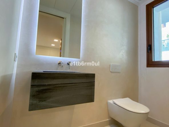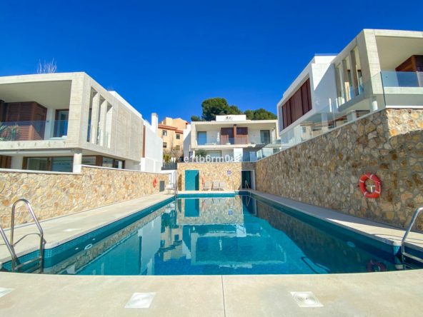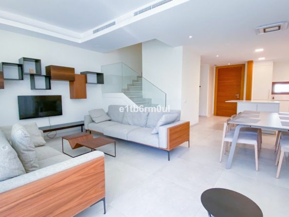 New semi detached villa in the heart of the Golden Mile, Marbella only 300m from the beach and the Puente Romano. Five-minute drive from Marbella Centre and Puerto Banus. 24-hour security communal pool, gym and spa. Perfect opportunity to own a three bed ( 4th in the basement ) three bath, brand new semi-detached house with private plunge pool. Open plan kitchen, living room leading out to private garden on the ground floor with guest WC. 1st floor hosts three bedrooms , one en-suite, two sharing a bathroom. On the 2nd floor a magnificent solarium with views to the concha mountain. Basement floor living room, 4th bedroom and bathroom. Two car parking spaces with direct access to the house and storage space are also included.