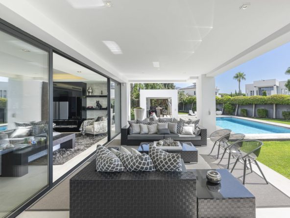 Situated within the exclusive gated enclave of Altos de Puente Romano, this exceptional contemporary villa offers the perfect blend of refined luxury and Mediterranean sophistication.