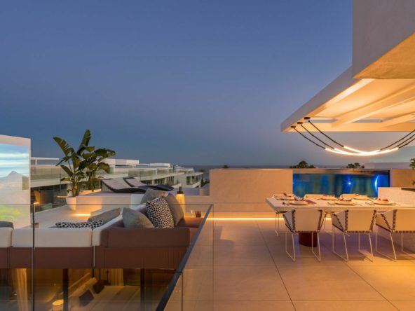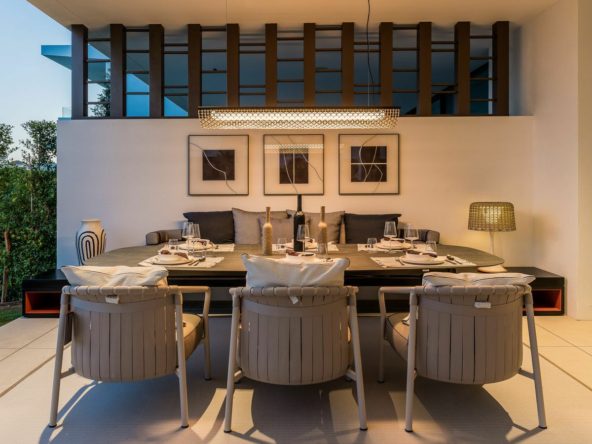 The villa’s interior is meticulously crafted by Pedro Peña, who has sourced the finest furniture and materials for this unique project.