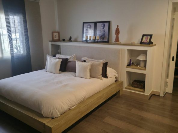 The bedrooms are in a separate wing with a large master bedroom with a walk-in closet and bathroom en-suite. Further two guest bedrooms sharing a family bathroom.