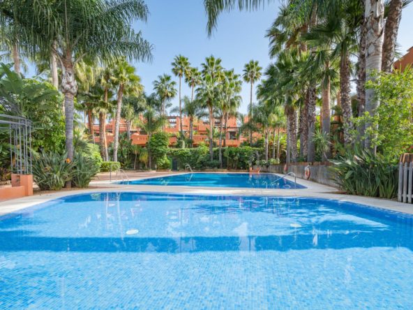 The Mediterranean-style complex is surrounded by lush tropical gardens and offers two swimming pools and 24-hour security, ensuring an atmosphere of peace, privacy, and luxury in the heart of Marbella’s Golden Mile.