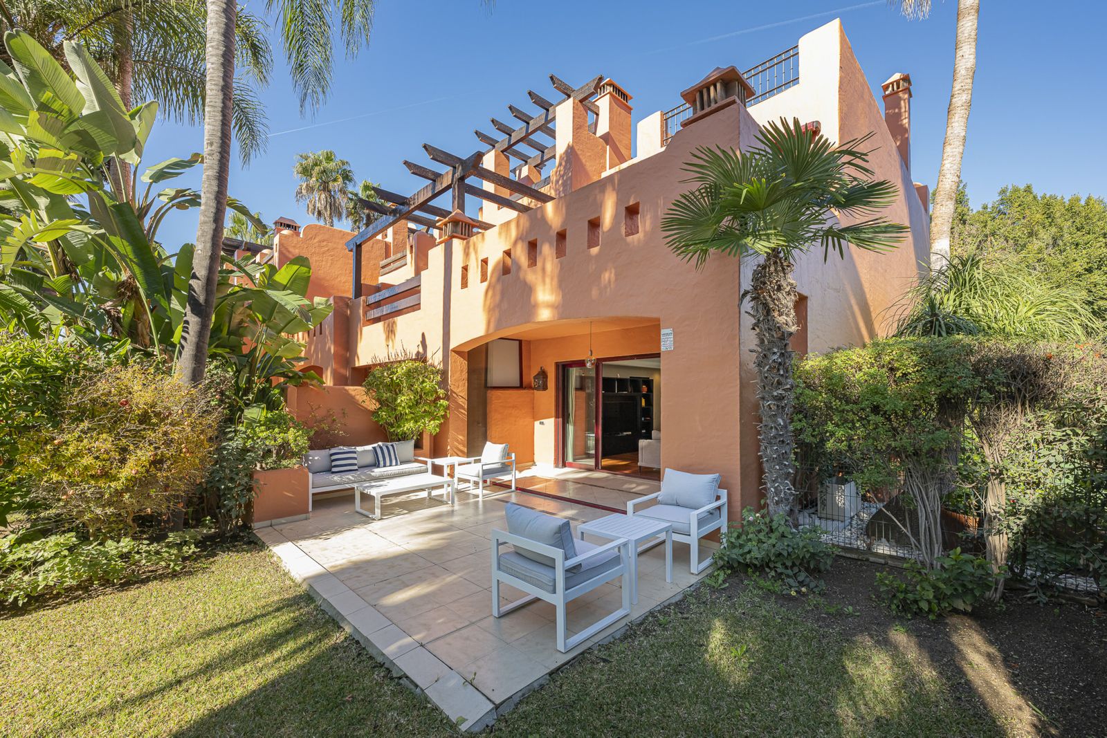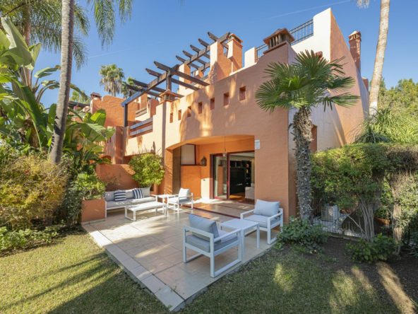 Situated in one of the most exclusive residential complexes on Marbella’s Golden Mile**, this magnificent townhouse perfectly combines elegance, comfort, and a privileged location — just minutes from Puente Romano, Puerto Banús, and the city centre.