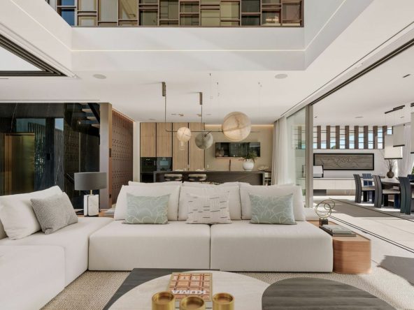 We are thrilled to introduce this remarkable residence in this esteemed new community. This west-facing villa, designed by Marbella’s top architect and exquisitely furnished by Pedro Peña, offers an elevated living experience in one of the most coveted locations.