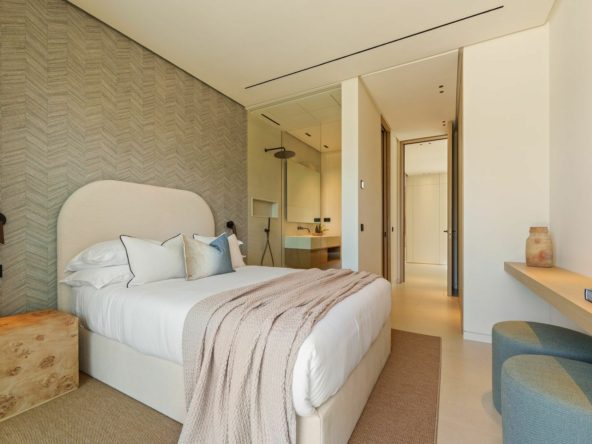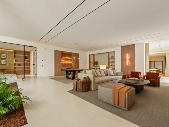 This villa is a masterpiece of contemporary architecture located in the prestigious Lomas de Marbella Club on Marbella's Golden Mile. Built across 1,460 m² on a 1,010 m² plot, this 5-bedroom residence embodies a perfect balance between elegance, privacy, and Mediterranean serenity. Designed with wood and stone as its main elements, the home exudes an organic warmth—giving the inside a sense of green tranquility and the outside a calm, natural harmony.