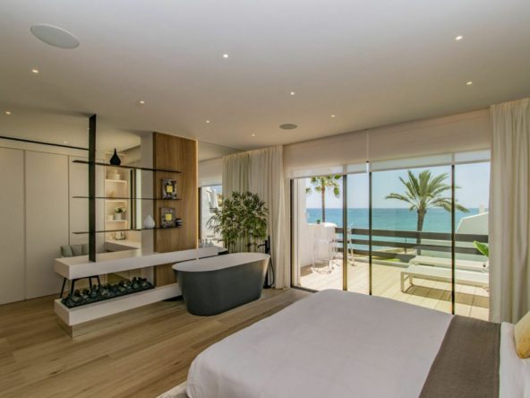 Experience the pinnacle of Mediterranean living in this stunning 222 m² beachfront residence, perfectly positioned on Marbella’s legendary Golden Mile. Just a short stroll from the glamour of Puerto Banus, this four-bedroom home has been meticulously reimagined to offer the ultimate in modern sophistication.