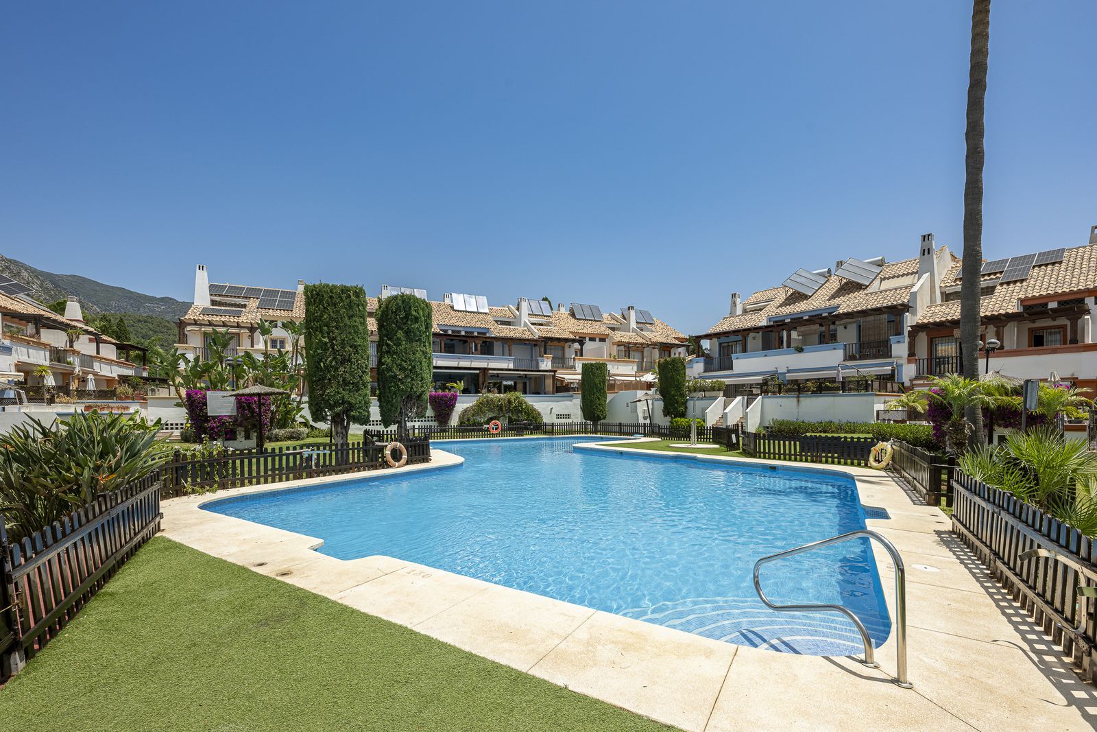 Located in a quiet gated community with landscaped gardens and communal swimming pool, this bright semi-detached house offers spaciousness, comfort and an excellent quality of life, just a few minutes from the centre of Marbella.