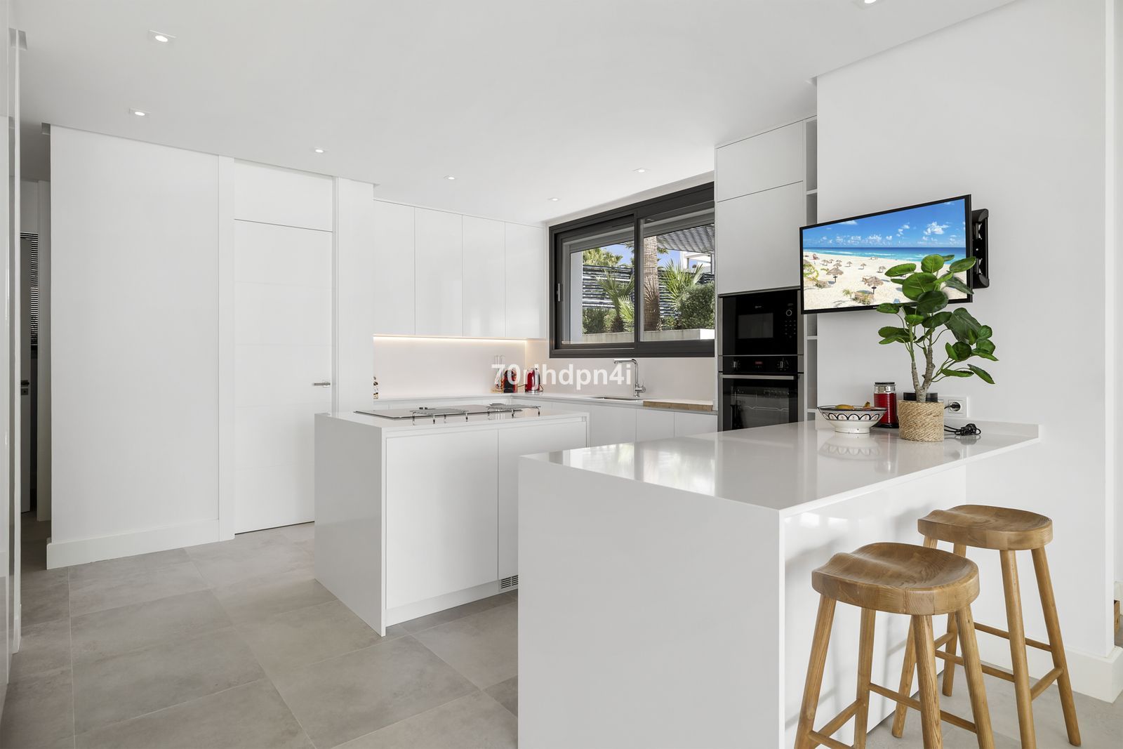 Ground Floor: A spacious open-plan living area flows seamlessly into the modern kitchen, which is fully equipped with high-end NEFF appliances and includes a practical utility room. Large floor-to-ceiling windows ensure an abundance of natural light and offer direct access to the terrace. On this level, there is also a generous guest bedroom with fitted wardrobes and an en-suite bathroom.