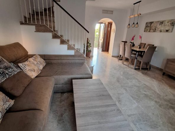 Discover unparalleled coastal serenity in this magnificent semi-detached townhouse within the prestigious Sierramar III urbanisation, a secure gated enclave in Marbella's exclusive Huerta del Prado-La Montúa district, nestled against the foothills of the iconic La Concha mountain on the renowned Costa del Sol. This family-friendly haven—boasting lush communal gardens, two sparkling swimming pools (one for adults, one for children), a paddle tennis court, and 24-hour security—offers the perfect fusion of tranquillity and convenience. Just a short stroll from local amenities like pharmacies, bars, restaurants, and schools, it's a mere 600 metres from the city bus station with direct links to Málaga Airport, and only 5-10 minutes' drive from Marbella's vibrant centre, golden beaches, and the glamour of Puerto Banús. Embrace the microclimate of over 300 sunny days a year, with easy access to hiking trails, international schools, and world-class golf courses.