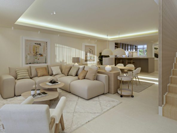 Located in the prestigious community of Arco Iris on Marbella’s Golden Mile, this exceptional corner townhouse offers a rare opportunity to acquire a fully renovated turnkey residence in one of Marbella’s most desirable locations. The property features five en-suite bedrooms plus an additional guest toilet, within a built area of 303 m², combining refined design, privacy and prime positioning.