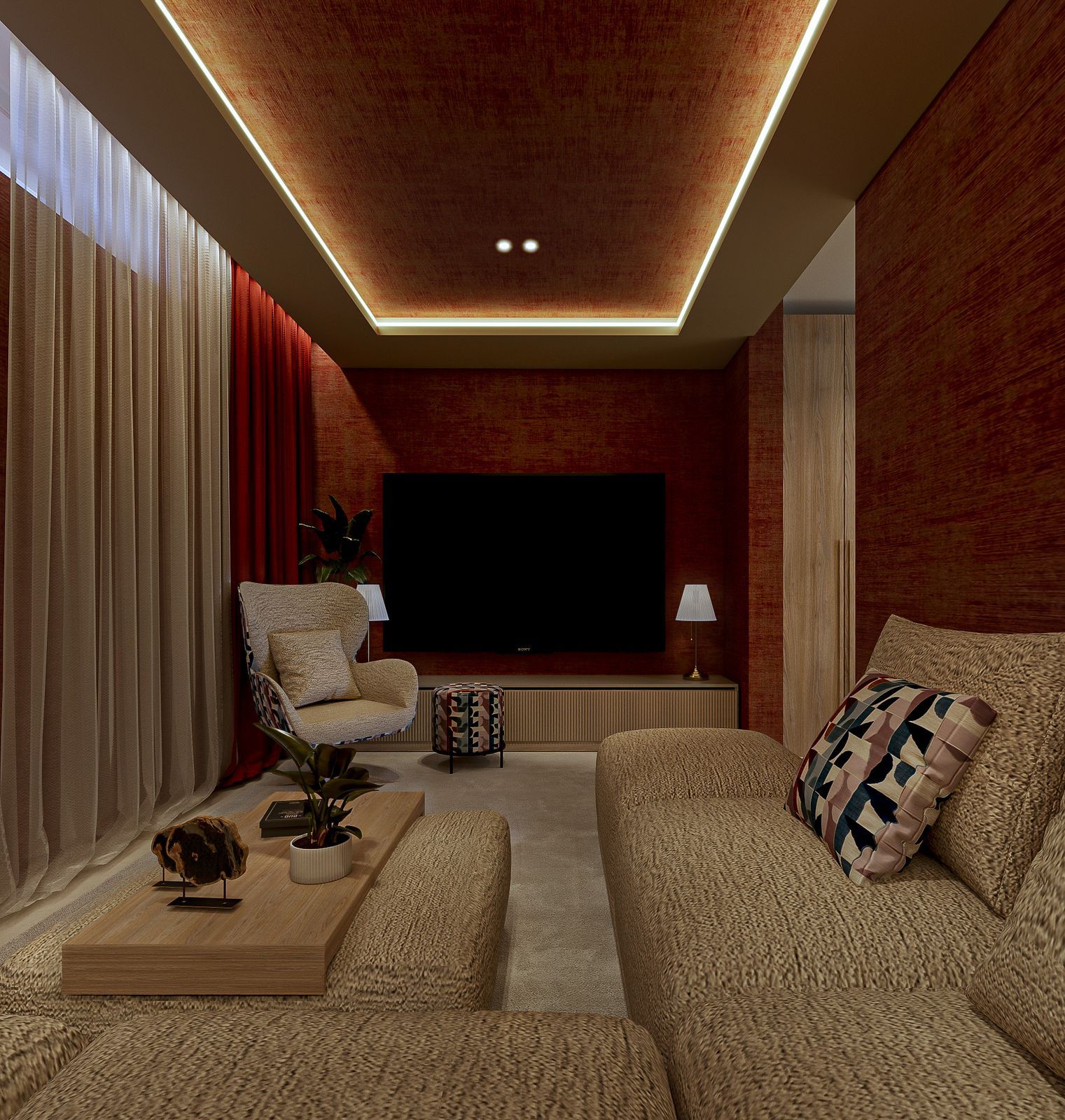 One bedroom is currently configured as an intimate cinema and games room with a large-screen TV, sound system and ambient LED lighting, and can easily be converted back into a full fifth en-suite bedroom. Lighting has been carefully designed, with most ceiling and ambient lighting installed on dimmer systems to create flexible atmospheres throughout the home.