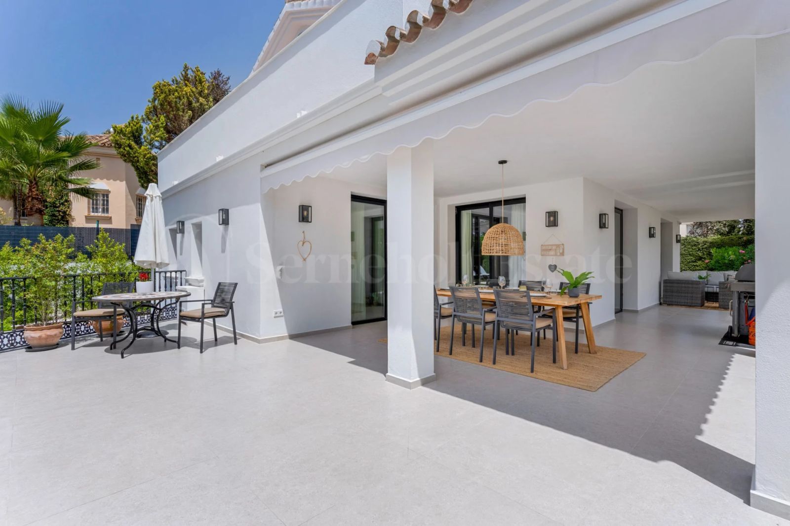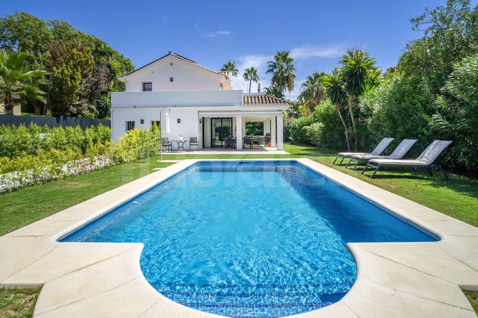 Welcome to a newly renovated villa of the highest quality, completed in 2024 in a modern Scandinavian style. Four bedrooms and four bathrooms, three of which are en-suite with underfloor heating. The ground floor has a kitchen from Ballingslöv and Siemens appliances, a living room in a bright open plan and direct access to the large terrace and garden.