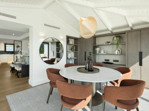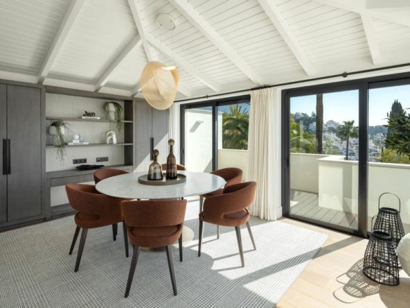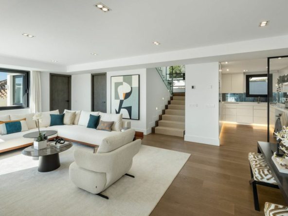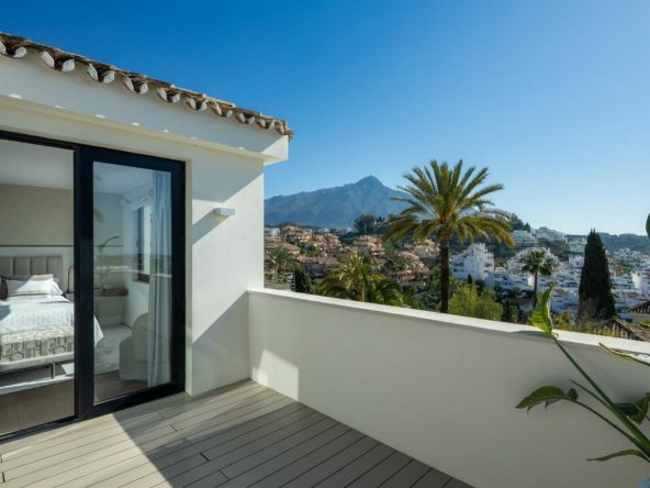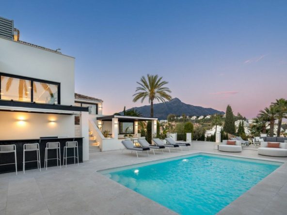 Villa Seraphina is a newly renovated masterpiece showcasing striking architecture and curated interiors, perfectly positioned within the exclusive gated enclave of Los Naranjos Hill Club in Nueva Andalucía. Enjoy sweeping views of the iconic La Concha mountain and the shimmering Mediterranean Sea from this exceptional residence.