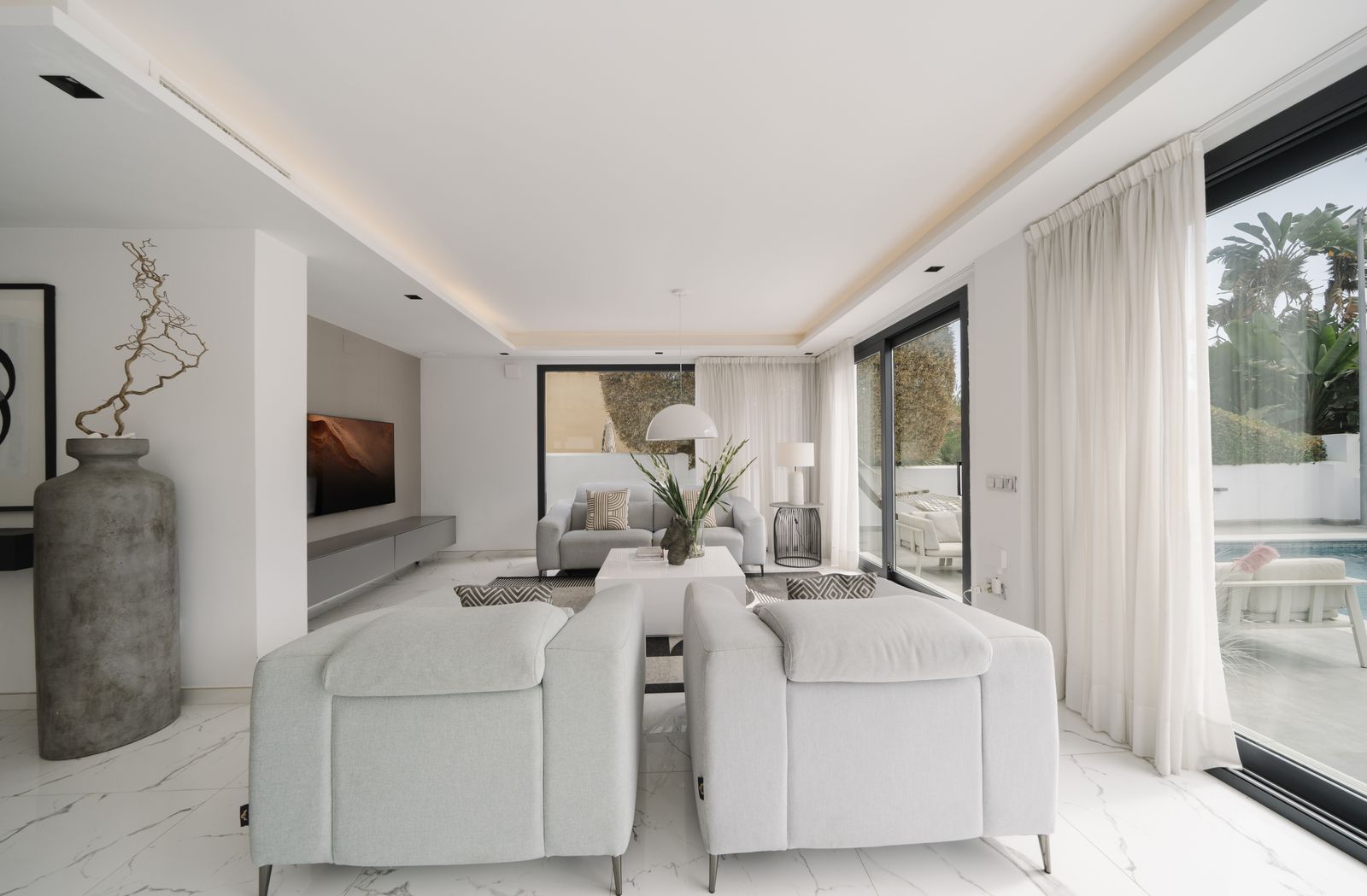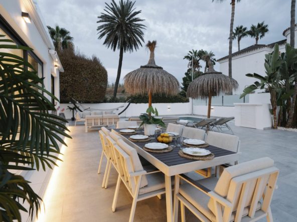 Discover this stunning 4-bedroom, 3-bathroom villa in the heart of Nueva Andalucía, just a short stroll from Puerto Banús and top-tier restaurants like La Sala, Breathe, and Occo. Nestled on a spacious 800 m² plot, this beautifully designed home offers the perfect blend of luxury, comfort, and investment potential.