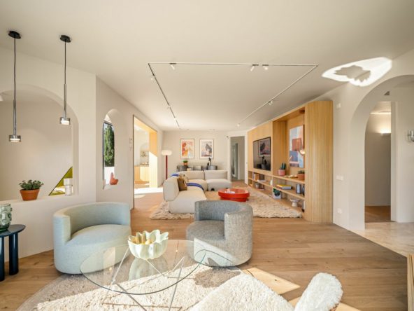 The interiors are fully furnished with handpicked design pieces from leading European manufacturers, reflecting a commitment to comfort and style. Saba Italia offers modular sofas that embody softness and freedom of form, while Ditre Italia and Twils supply beds with tailored elegance and orthopedic comfort. Zanotta, a symbol of timeless Italian design, and Mogg, with its bold artistic objects, bring personality to the spaces. Northern European brands such as &Tradition (Denmark), Punt Mobles (Spain), Layered (Sweden), Hay (Denmark), and Ferm Living (Denmark) contribute accessories, rugs, and accents that emphasize Scandinavian clarity and Mediterranean warmth.