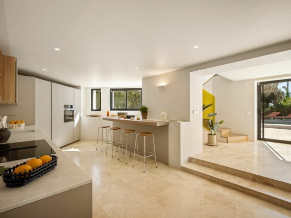 Welcome to a striking contemporary villa for sale in Las Brisas, Nueva Andalucía, where Mediterranean charm meets Scandinavian-inspired elegance. This modern residence redefines luxury living in Marbella’s famous Golf Valley, combining refined architecture, advanced eco-conscious systems, and bespoke European design pieces.