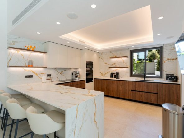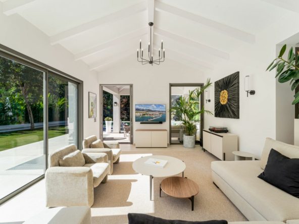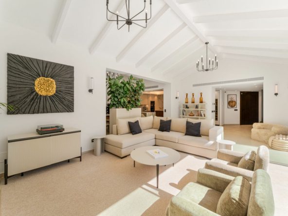 Elegant contemporary five bedroom villa for sale in the highly desirable neighbourhood of La Cerquilla, Nueva Andalucía. Renovated in 2025, this villa offers modern luxury living, functional design and elegant interior detailing.