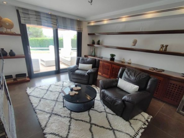 Built across two floors, this modern villa offers four double bedrooms with en-suite bathrooms and one single bedroom with a private shower room. The master suite has direct access to a large terrace overlooking the garden and pool, and includes a modern dressing room. The property is equipped with all contemporary amenities, including a utility room, private gym, home automation system, and a large integrated garage capable of parking at least four cars.