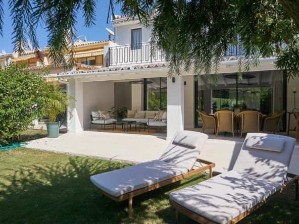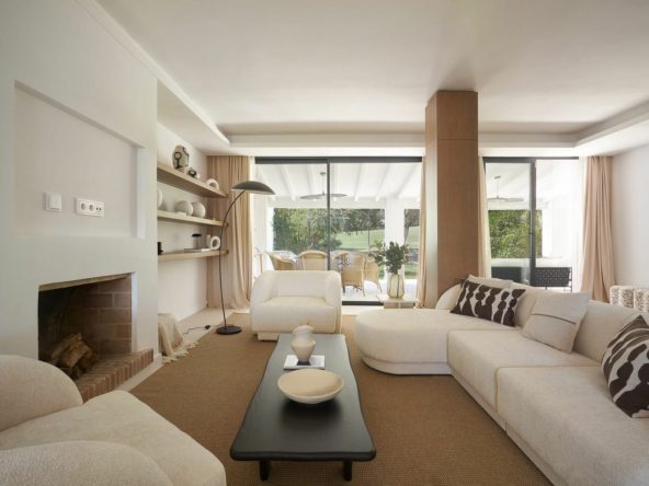 Frontline Aloha Golf townhouse nestled in the prestigious Golf Valley of Nueva Andalucía, this beautifully designed three-story townhouse offers a seamless blend of Mediterranean charm and modern living. Recently renovated, the property captures the lifestyle expectations of discerning buyers seeking comfort, style, and a prime location.