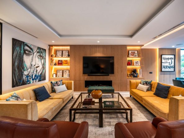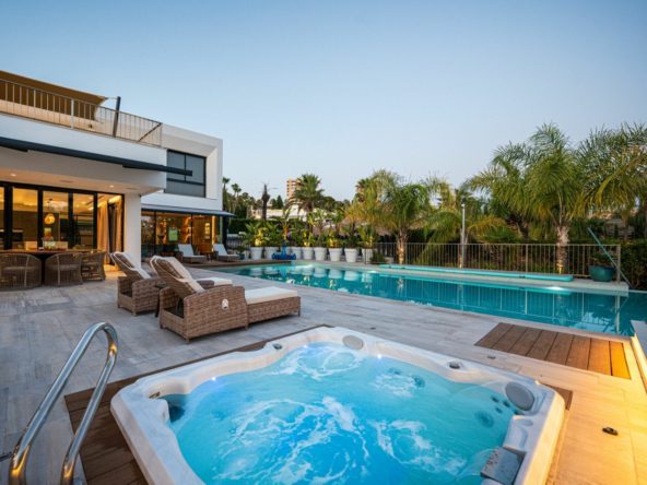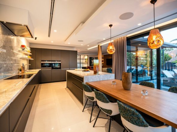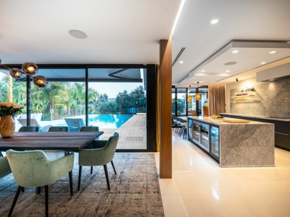 This is a luxury home in Marbella’s most exclusive gated community. The villa is spread over three levels and combines modern design with Mediterranean charm. It offers panoramic views of the golf course and mountains, with a south-facing position that ensures natural light throughout the day. Inside, the home features spacious open-plan living, a contemporary kitchen, and seamless access to the terrace with pool, jacuzzi, and outdoor kitchen.