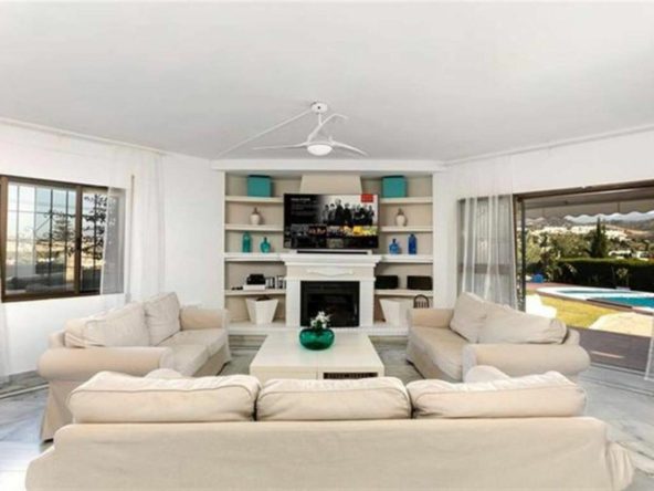The bedrooms are spacious, comfortable and well distributed. Outside, the villa has a beautiful private garden and a large swimming pool surrounded by natural grass, offering a perfect environment to enjoy the sunny climate of the Costa del Sol throughout the year.