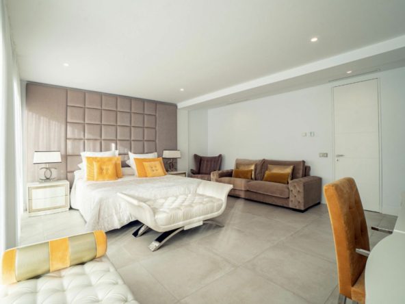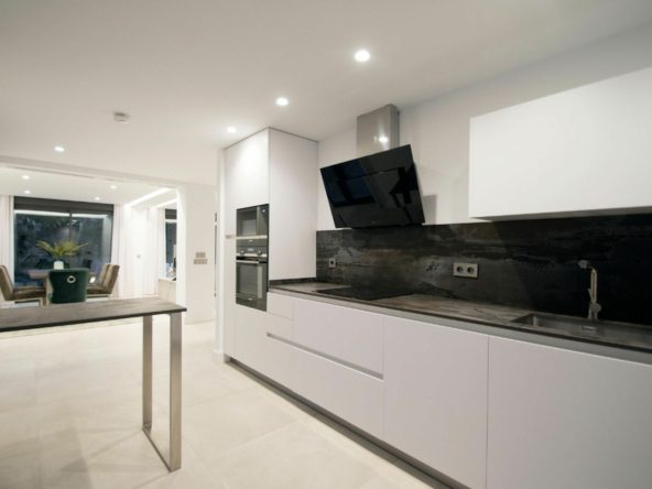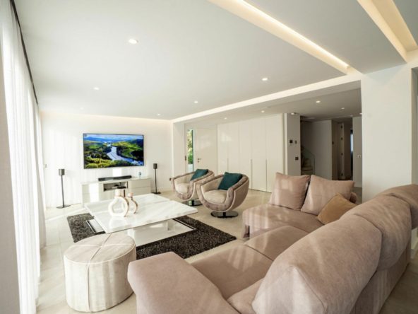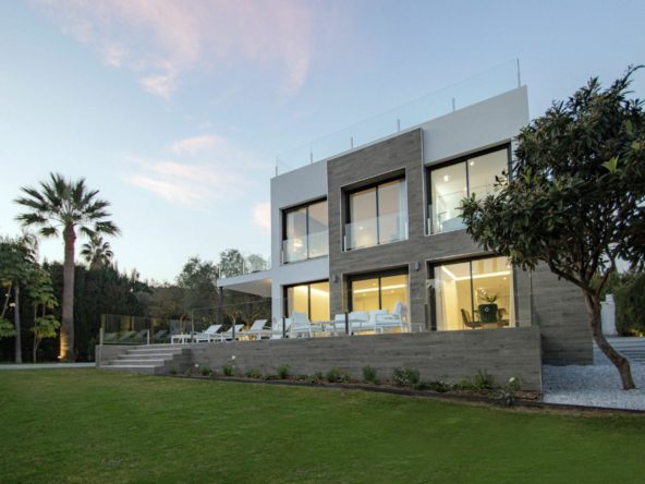 Exclusive villa located in the heart of Nueva Andalucia, renovated with luxury qualities. Privileged location, a short distance from Puerto Banus and the most prestigious golf courses, international schools, sports facilities and services. The house consists of 4 plus 1 bedrooms and 5 bathrooms. Upper floor with great views of the La Concha mountain and residential area, with a large solarium terrace. Open and minimalist spaces abound, along with high security measures, in addition to a beautiful lake with direct access from the garden, and a spacious private pool area, where you can enjoy the tranquility that the area offers.