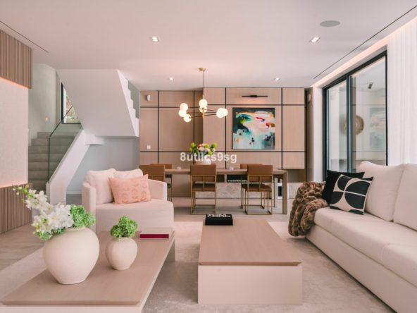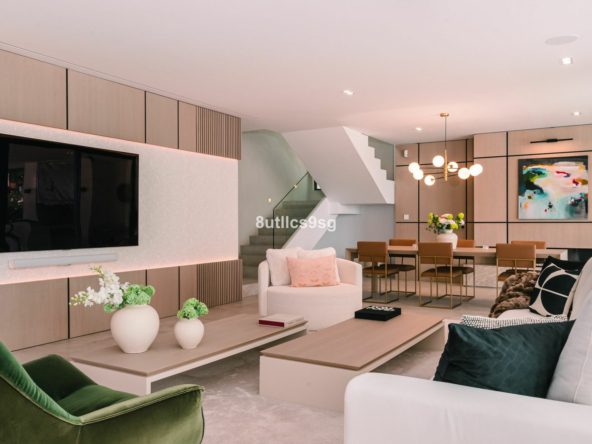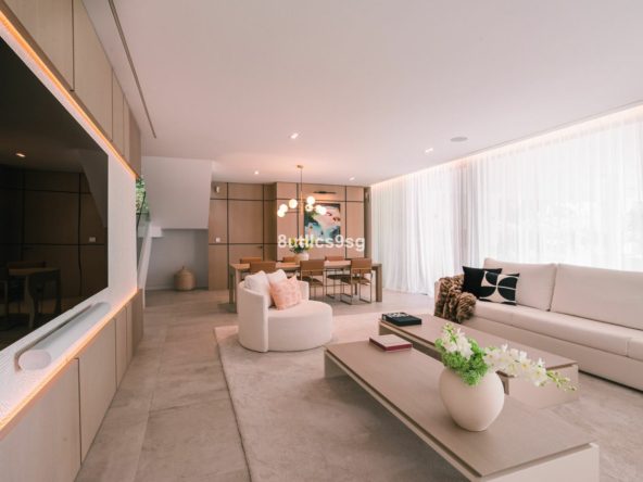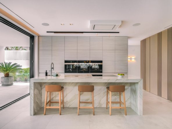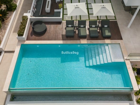 The villa has five bedrooms, all with en-suite bathrooms, ensuring privacy and comfort for its residents. The 491m² interior has been designed with high quality materials, including porcelain floors and double-glazed windows. The fully equipped kitchen is perfectly integrated into an open and functional space. Furthermore, the property is delivered fully furnished, ready to move into.