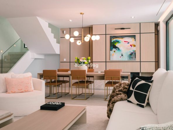 This stunning villa is located in the exclusive area of Nueva Andalucía, Marbella, Málaga, and stands out for its modern design and privileged location. With a constructed area of 844m² and a plot of 1.142m², this property offers a spacious and comfortable living space, ideal for those looking for a sophisticated home on the Costa del Sol. It also boasts panoramic mountain and golf course views, making it a unique place to enjoy the tranquillity and natural surroundings.