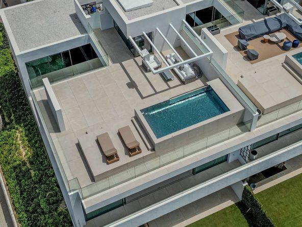 Each villa features 4 bedrooms, 5 bathrooms, and an open-plan living and dining area with a fully equipped kitchen fitted with top-of-the-line Gaggenau appliances.