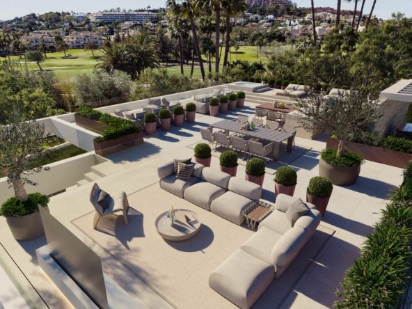 Elevate your entertainment aspirations on the rooftop terrace – a dream come true for those who love to host. Here, you'll discover an outdoor kitchen, spacious seating and dining areas, an open-air cinema, and a luxurious DROP spa. From this vantage point, you'll relish unparalleled views of the golf course and the picturesque valley, creating an atmosphere of pure sophistication.