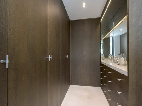 The principal bedroom suite is both sumptuous and extensive, comprising a large private lounge, a bedroom area, as well as a luxuriously appointed bathroom with twin basins, a walk-in shower and a standalone bathtub. There are also two separate, extensive dressing rooms with bespoke carpentry as well as a large private terrace with jacuzzi..