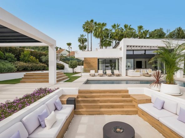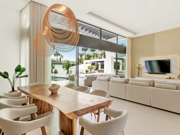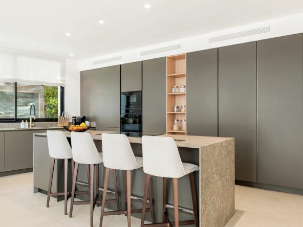 The villa is built mainly all on one level plus lower level, quite rare to find on the market. It has a fresh, modern feel throughout. Decorated in a soft, neutral palette, it feels relaxed, luminous and welcoming.