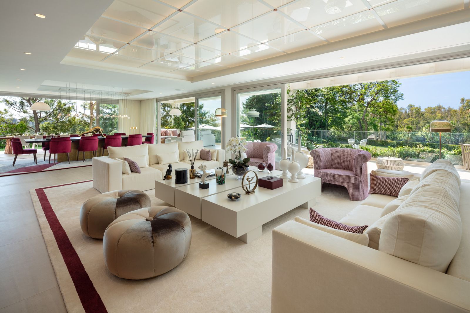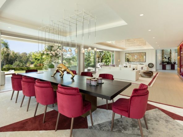 Beautiful villa located in a private oasis in the luxurious Aloha area of Marbella's Golf Valley. This magnificent property sits in a prestigious gated community and boasts an enviable front-line position overlooking Aloha Golf Course. The villa comprises a main residence with five generously sized bedrooms, including a luxurious master suite with a dressing room. The bedrooms exude individuality with their distinct touches, yet their cohesiveness is a testament to the clever design decisions. There is a separate one bedroom guest house, perfect for accommodating staff or visitors. The allure of this villa lies in its enchanting outdoor areas, where a lush green garden and spacious terraces offer the ideal setting for enjoying Marbella's perfect climate throughout the year. The verdant surroundings of the main house are adorned with greenery, which seamlessly blends with the other green areas of the property. This unique villa boasts spectacular views and luxurious amenities.