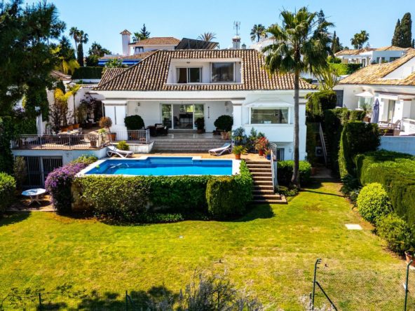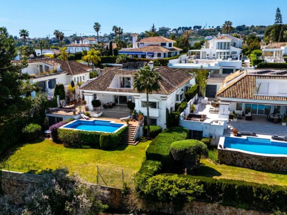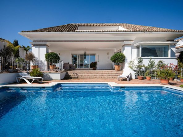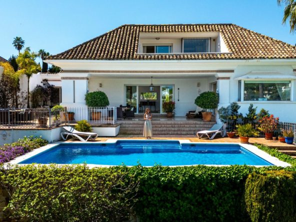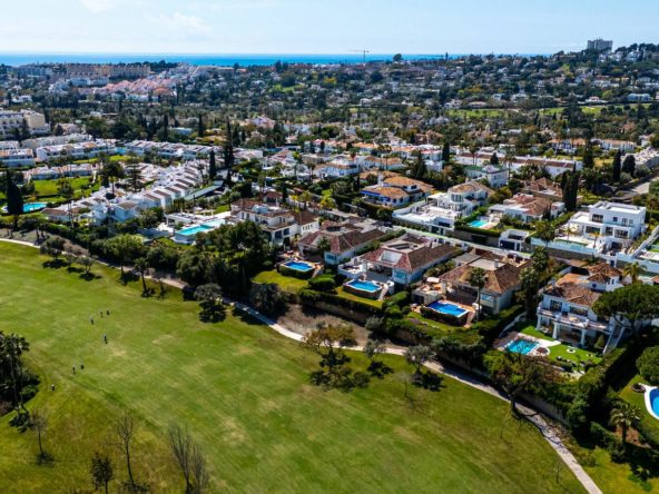 Introducing an exceptional Andalusian villa set in a prime frontline position overlooking Aloha Golf Club, where breathtaking panoramic views extend across the fairways to the iconic La Concha.