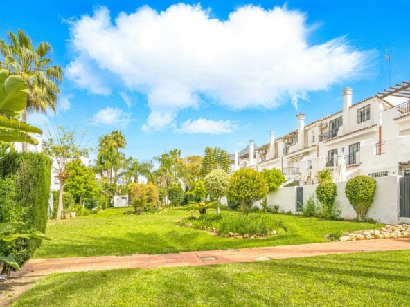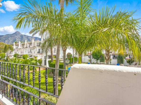 Located in the prestigious community of Los Naranjos de Marbella, this spacious semi-detached house offers a privileged setting with landscaped gardens, communal pool and a Mercadona supermarket. Within walking distance of Puerto Banus and just a few minutes drive from the center of Marbella, this house combines comfort and exclusivity. The house enjoys an excellent east-west orientation, allowing natural light throughout the day, and offers breathtaking views of the pool, gardens and mountains. On the ground floor, we find a spacious and bright kitchen with access to the utility room. The spacious living-dining room, with large windows, opens to a charming terrace ideal for enjoying the Mediterranean climate. On the first floor is the master bedroom en suite with private terrace, along with two guest bedrooms that share a bathroom. One of these bedrooms also has access to the terrace. The second floor has a solarium, perfect to relax and enjoy the panoramic views. In addition, in the attic area there is the possibility to create an additional bedroom simply by removing a partition. Among its features are the built-in wardrobes, cold/hot air conditioning, marble floors and an outdoor garage space inside the property. Unlike many townhouses, it only shares a wall with the neighbour, thus enjoying greater privacy. A unique opportunity to live in an exclusive environment, with all the amenities at your fingertips.