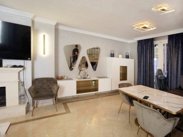Discover your dream home in the heart of Aloha, Costa del Sol! This stylishly renovated 2-bedroom, 2-bathroom townhouse in the exclusive Aloha Lake gated community offers a beautifully designed living space, perfect for both year-round living and idyllic holidays. Bask in the afternoon sun on your 18 m² west-facing terrace or unwind in the cozy 12 m² private garden, all while enjoying countryside and mountain views.