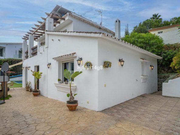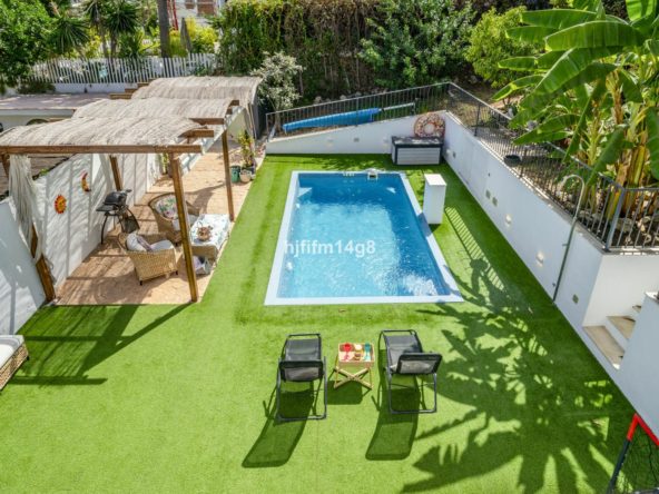 Set on a generous 426 m² plot with fruit trees, a private swimming pool, and a cozy chill-out area, this home is designed for enjoying Marbella’s outdoor lifestyle with family and friends. The 138 m² villa is distributed across two levels. The ground floor features a spacious open-plan kitchen connected to a bright living and dining room, a full bathroom, and two comfortable bedrooms.