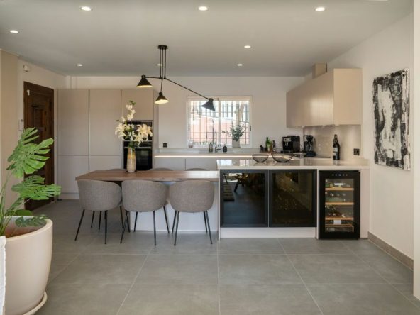 This beautifully renovated 4-bedroom townhouse is located in a private, peaceful, and secure gated community in the heart of Nueva Andalucía. Designed in a refined, sober Scandinavian style, the home offers a perfect balance of modern comfort and timeless elegance.