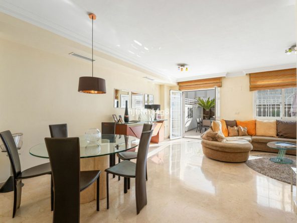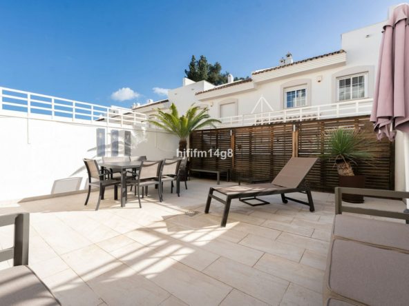 This stunning 3-bedroom townhouse is for sale in the highly sought-after El Alcornoque urbanisation in Nueva Andalucía, one of Marbella’s most prestigious areas. Nestled front line to the renowned Aloha Golf Course, this exclusive development of just 22 units offers privacy, tranquility, and beautifully maintained communal gardens with a refreshing pool.