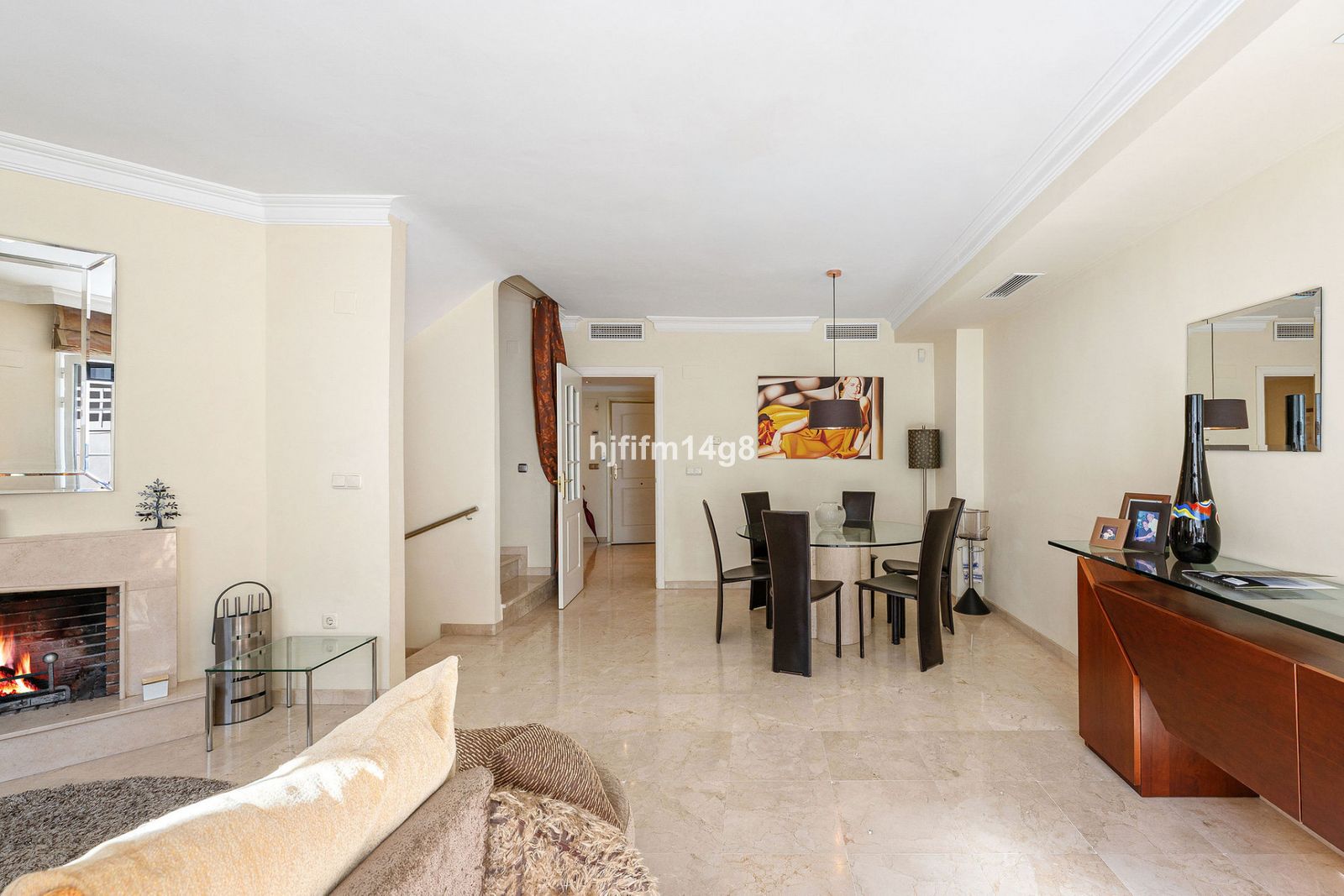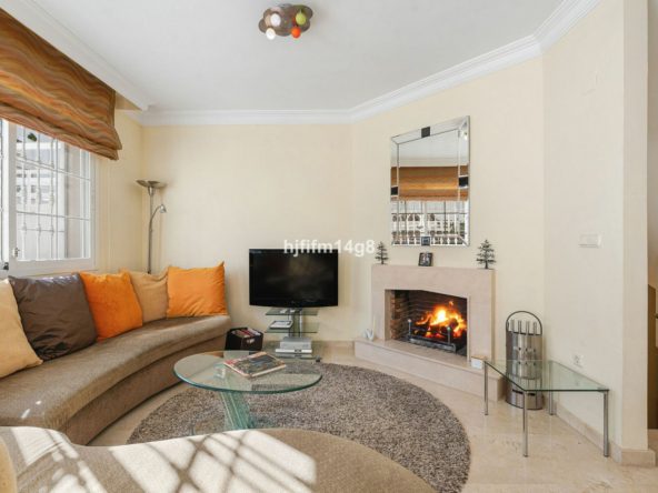 The townhouse is distributed over several levels and offers generous interior and exterior spaces. On the entrance level, you will find a bright and inviting combined living and dining room featuring an open fireplace and direct access to a south-facing terrace, perfect for enjoying Marbella’s year-round sunshine. The fully fitted kitchen is practical and well laid out, complemented by an entrance hall, storage room and a guest toilet on this level.