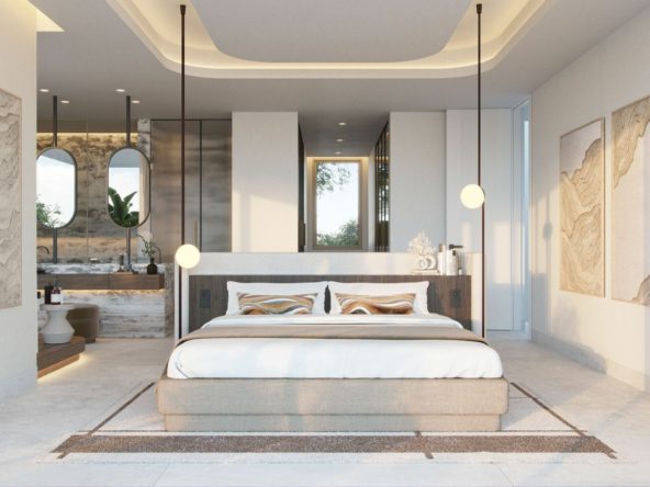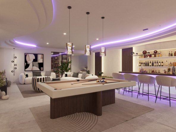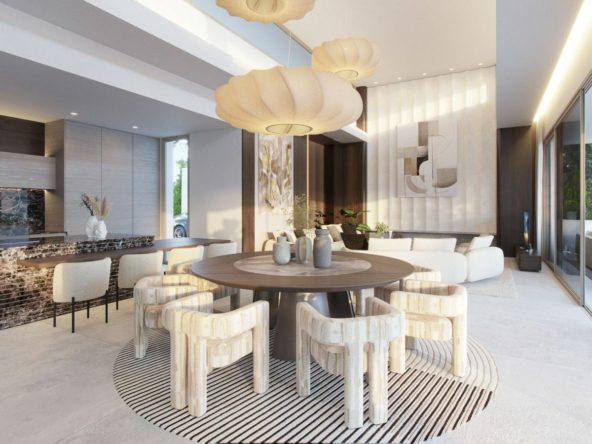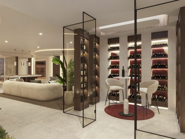 With five bedrooms, six bathrooms, a private pool, spa, gym, cinema, and over 400 m² of terraces, th villa offers a lifestyle of comfort, elegance, and seamless indoor-outdoor living. Set on a 1,458 m² plot, the contemporary design takes full advantage of the orientation and natural surroundings to create bright and harmonious spaces.