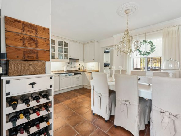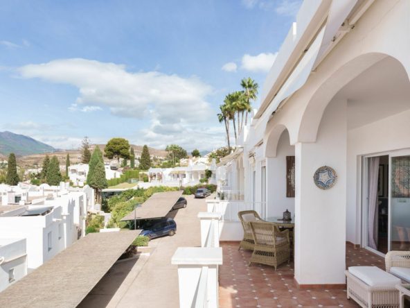 We present this special & classic property in the well known development of Los Jarales. Nestled in the heart of Aloha with views towards the Aloha golf course and across the valley. The spacious entrance takes you to the property through the large patio where you can enjoy the morning sun and its a perfect place for the warm summer evenings. The spacious living room has direct access to the west facing terrace with beautiful open views, here there is also the large kitchen and laundry area , the spacious master suite and a guest toilet. On the lower floor you have 2 large ensuite bedrooms. The property comes with a private look up garage which is easy accesable from the house. The property has been well maintained by the current owners and is ready to move into. Please note that the m2 built are bigger than advertised. A true gem in a popular urbanisation.