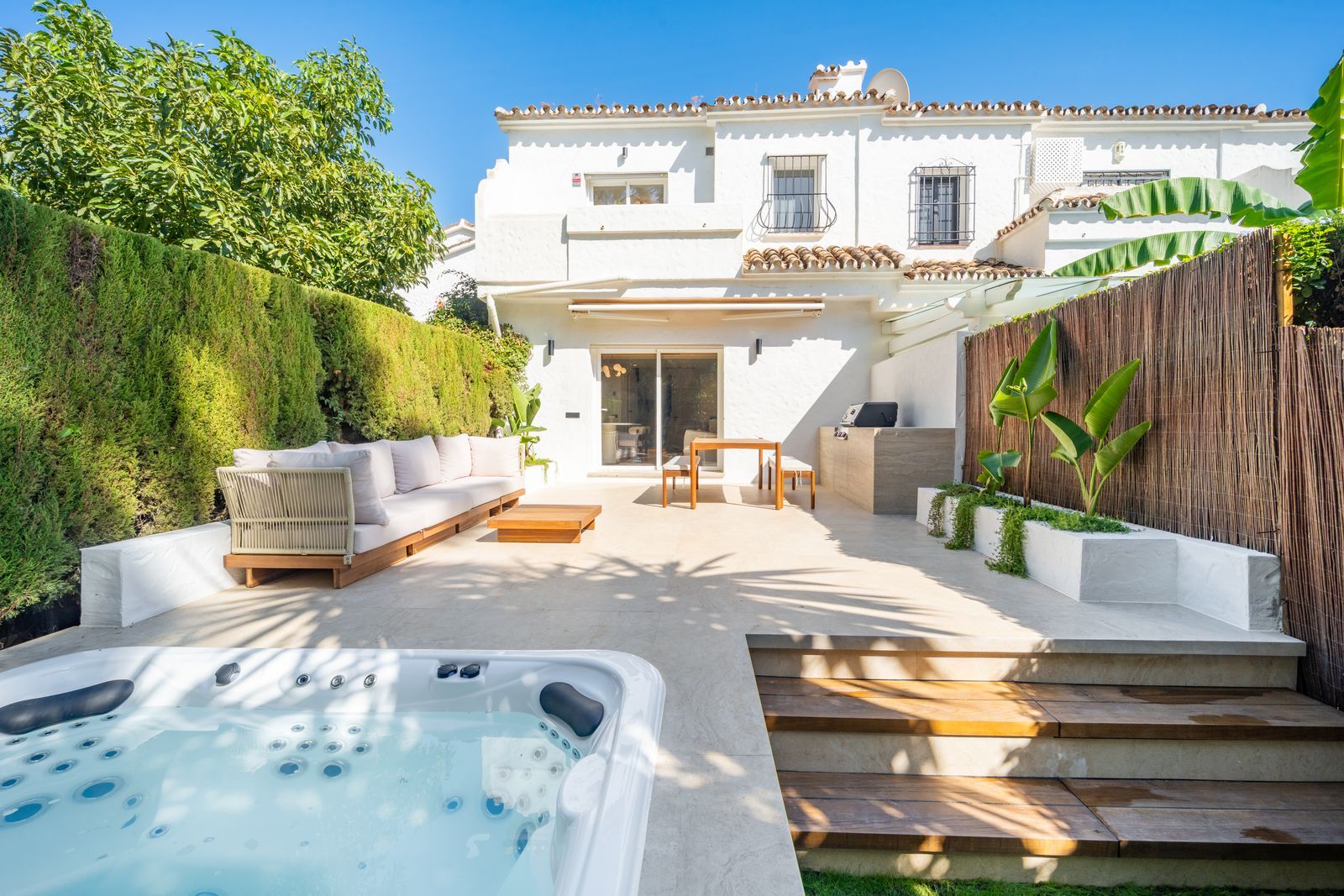 A newly renovated 2 bedroom end of terrace house in the heart of Nueva Andalucia. Located in one of the most prestigious communities, Los Naranjos Country Club, a gated community with security, 2 pool, a tennis court and located frontline of Las Brisas Golf Course.